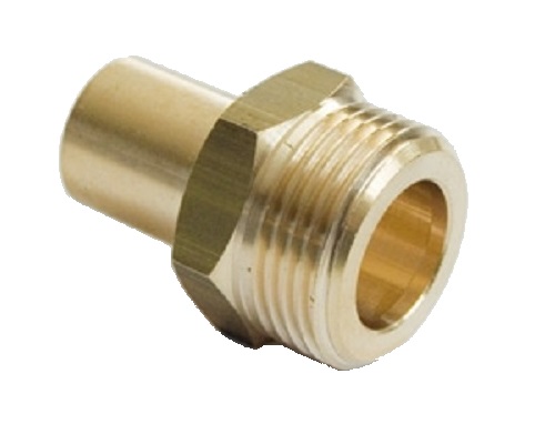Produktinformationen "Messing Übergangsnippel mit Rohrstutzen 3/4"AG x 22 mm aussen ( Klemm-Nippel ) flachdichtend"