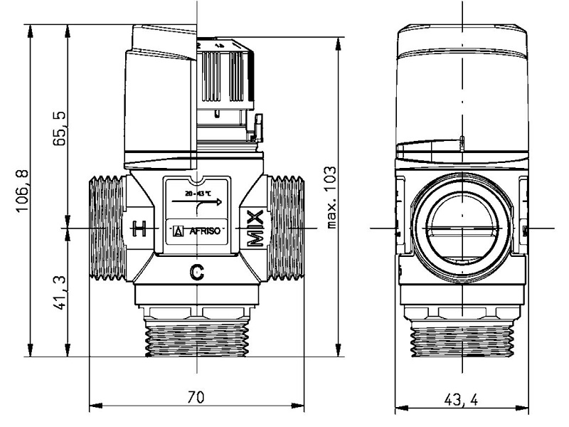 Produktinformationen "Afriso Thermisches Mischventil / 3 Wegemischer ATM 563 mit 3 x 1" AG, 2,5 m³ / h, Temperatur einstellbar von 35 - 60 °C"
