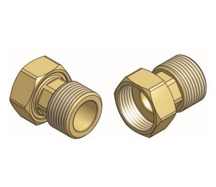 z.B. 1“ Überwurfmutter auf 1“ Außengewinde als Durchgangsverschraubung oder in Eckausführung, mit 1/2“ Öffnung im Knie für z.B. eine Tauchhülse oder einen Entlüfter.