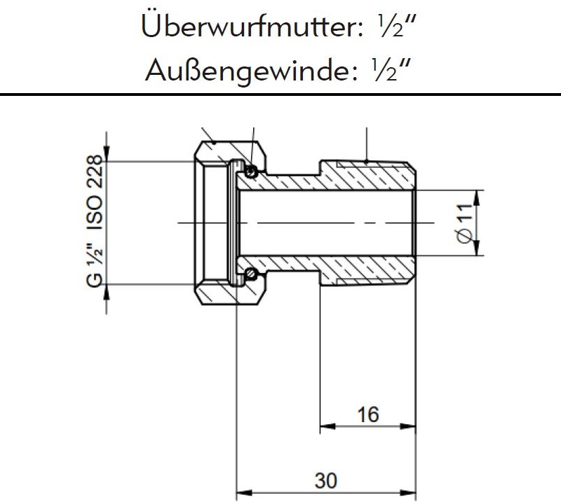 Produktinformationen "Verschraubung gerade ohne Dimensionsreduktion, mit 1/2" Überwurfmutter auf 1/2" AG"